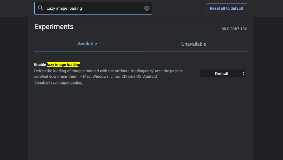 顾名思义,延迟图像加载会延迟图像加载时间,chrome 标志只会在用户进入视口时呈现图像,即仅当用户向下滚动页面时。这是一个非常有用的 Chrome 标志,可以帮助加快页面加载并减少您的互联网数据,因为只有在您滚动页面时才会加载图像。它推迟加载带有属性“loading=lazy”的图像,直到页面在它们附近向下滚动。