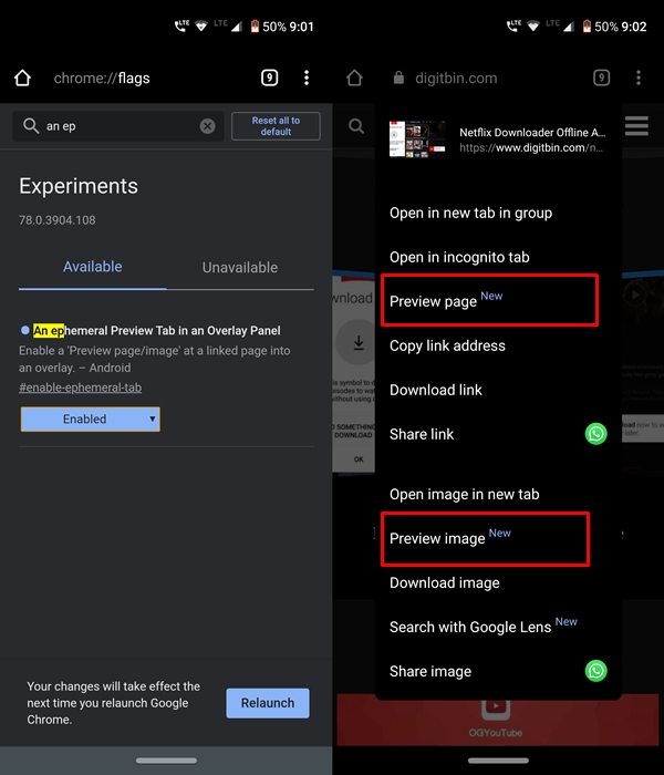 借助覆盖面板标志中的临时预览选项卡,您可以在打开链接之前实际预览链接。它会给你一个覆盖在现有页面的顶部。如果您希望进一步扩展它或者如果它没有用,只需点击关闭图标即可将其删除。您当前/现有的网页将没有任何影响。这是我最喜欢的 Chrome 标志之一,绝对可以节省大量时间和精力。