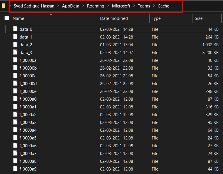 - 启动文件资源管理器并转到 Team’s Cache 文件夹,使用以下地址%appdata%\Microsoft\teams\cache