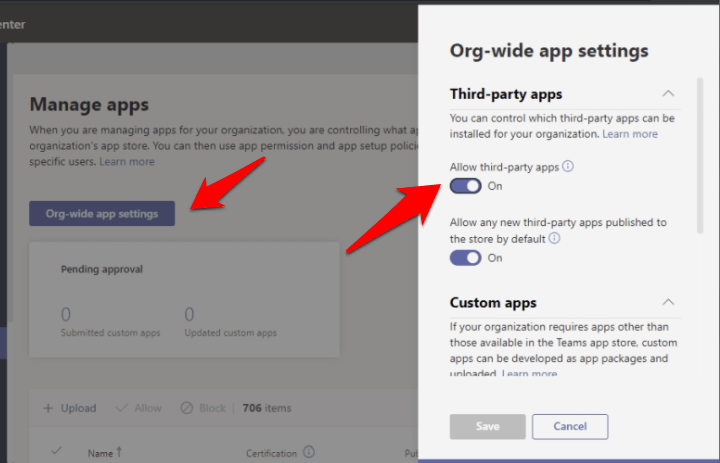 - 现在转到Team Apps> Manage Apps并选择Org-wide settings。