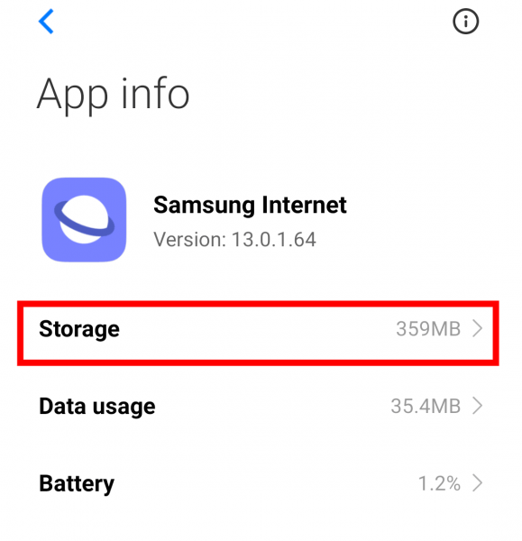 这将显示三星 Internet 浏览器占用的整个存储空间。 - 点击清除数据 选项完成。