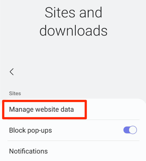 三星浏览器中没有明确的按钮或选项来执行硬刷新。但是我们可以清除站点数据,这也与进行硬刷新相同。
