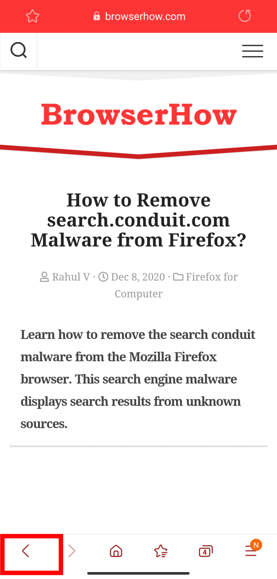 - 打开任何网站,比如 browserhow.com,然后开始在页面内导航。
