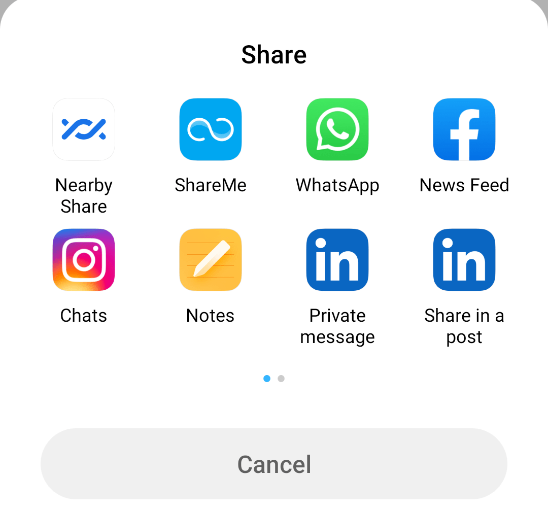 这将使您能够轻松地与所有朋友和家人共享网站链接。您还可以选择手机上已安装的共享应用程序。