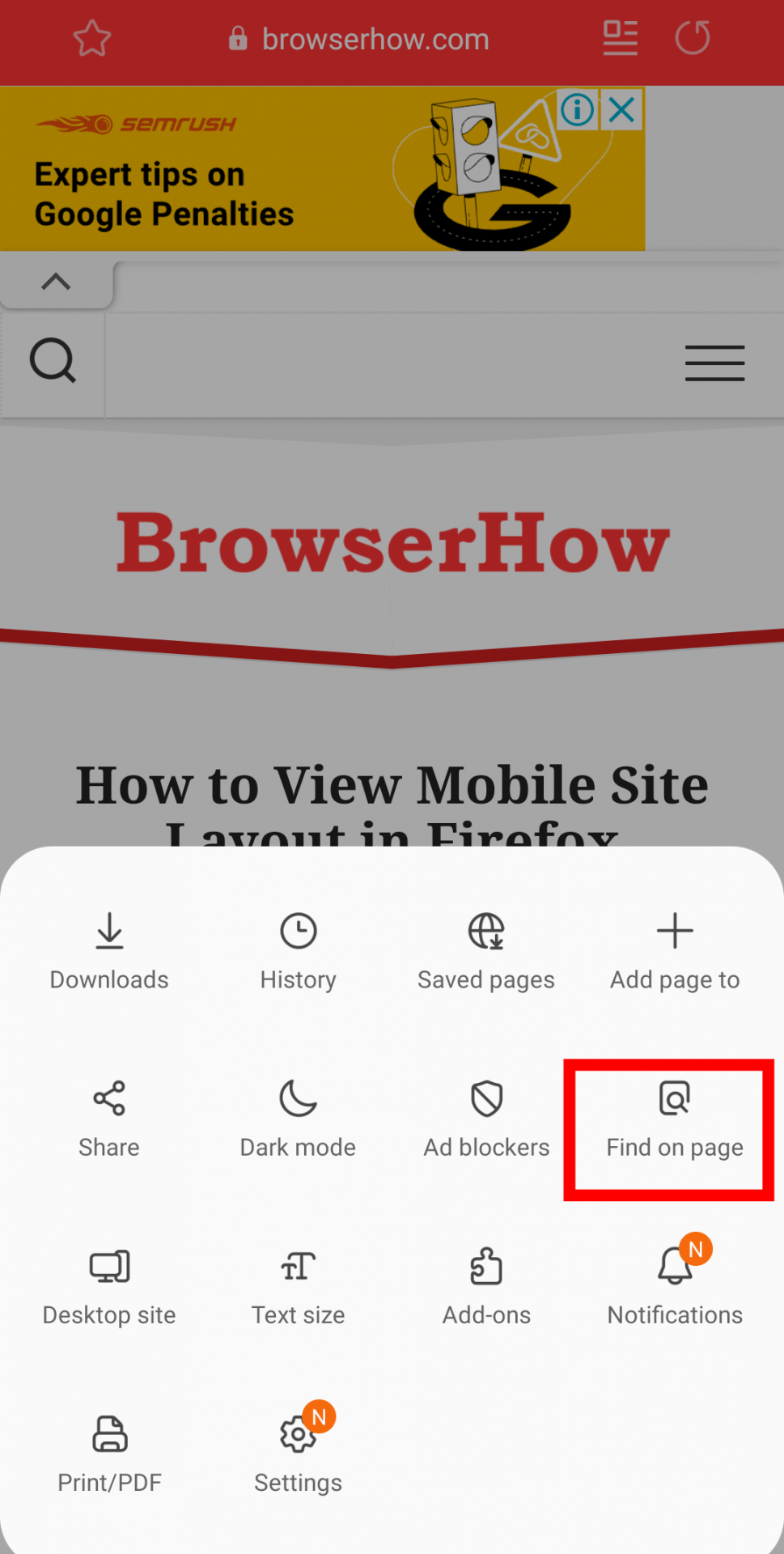 好吧,三星 Internet 浏览器中的“在页面上查找”可为您提供帮助。它将自动查找匹配的短语并显示重复。
