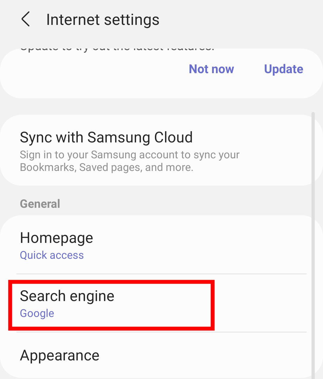 更改三星 Internet 中的搜索引擎
