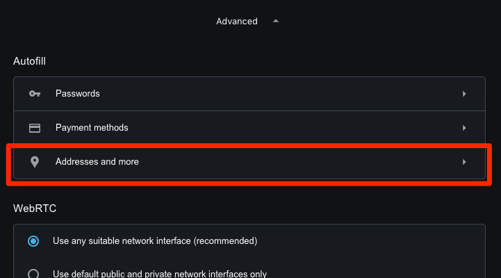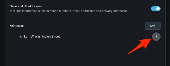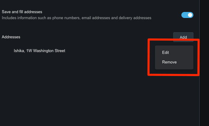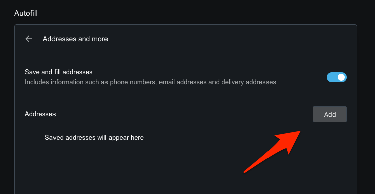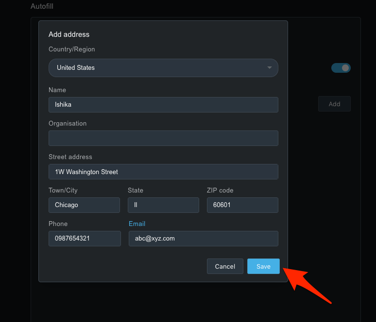 注意:确保在地址和更多选项卡下启用保存和填充地址切换,以便自动填充工作。