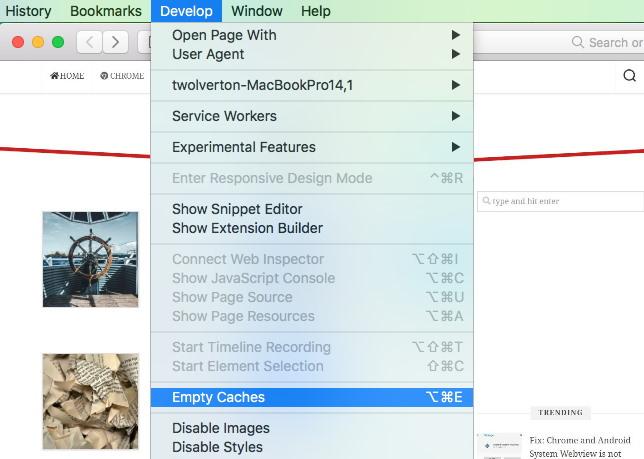 它将在 Safari 菜单栏中启用一个新的开发菜单。 - 单击菜单栏上的开发菜单。