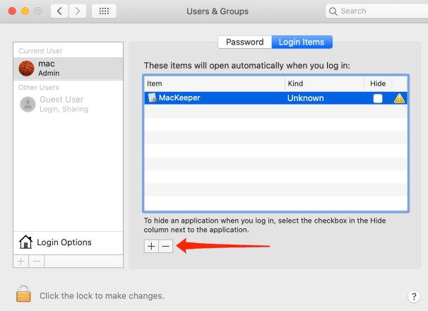 如果您的 Safari 浏览器感染了恶意软件或病毒,它会在您的 Mac 启动时自行激活并导致 Bing/Yahoo 重定向。从 Mac 上的登录项目中删除任何可疑条目。