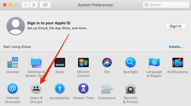 它将打开“系统偏好设置”窗口。 - 选择用户和组选项卡。