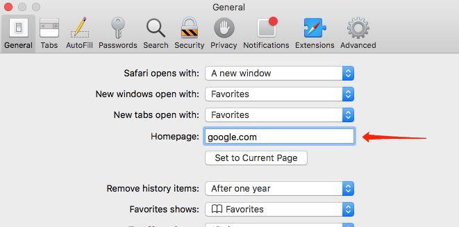 它将打开 Safari 偏好设置窗口。 - 切换到“常规”选项卡,并为您的 Safari 浏览器设置首选主页。