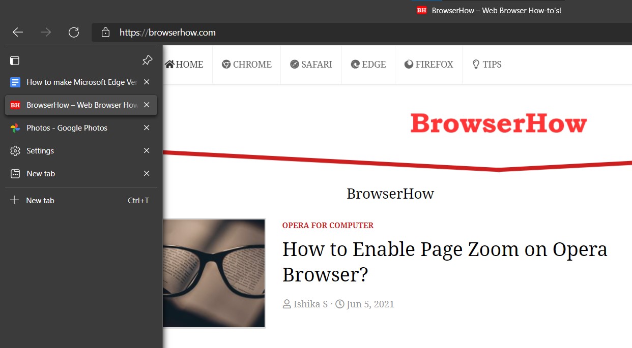 被称为垂直选项卡 允许您将所有选项卡移动到左侧菜单栏,而不是先前的水平选项卡。因此,之前包含选项卡的水平栏现在将仅显示当前打开的选项卡的名称和图标。