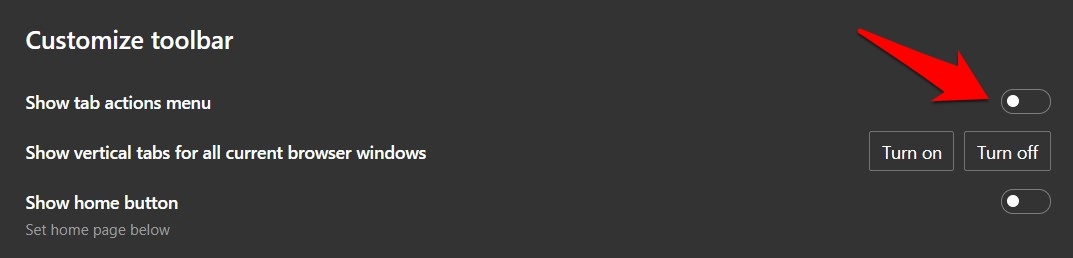 如果你想永久禁用选项卡操作菜单,打开Microsoft Edge的设置>外观和禁用的制表显示操作菜单 选项。