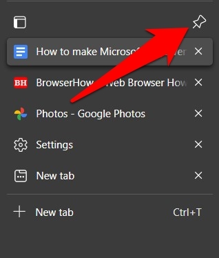 此外,还有一个选项可以让垂直选项卡始终处于展开状态。为此,您需要单击位于右上角的Pin 图标。