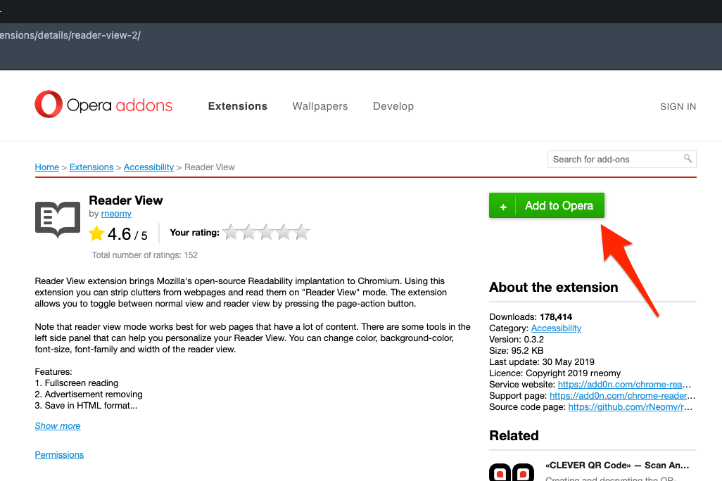 以下是在 Opera 上安装阅读器视图扩展的步骤: