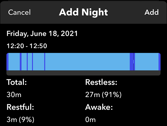 关键是 Sleep++ 使您能够在事后的任何时间快速添加睡眠会话,然后使用您的 Apple Watch 运动数据来解决问题。这个过程是这样的: