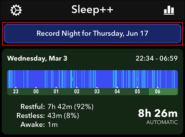- 第三步:有机会时,打开 iPhone 上的 Sleep++ 并轻点“为 [今天的日期] 录制夜晚”。