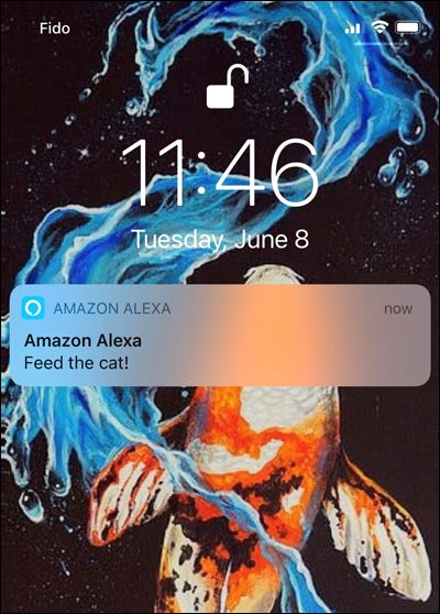 只要您连接到互联网,Alexa 就会向您的手机发送自定义通知,而不是大声朗读自定义消息。这是在旅途中定期给自己提醒的完美方式。