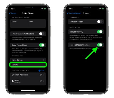 启用预设的焦点模式后,您可以过滤或隐藏传入的通知,包括设备主屏幕上所有应用程序的通知徽章。以下步骤将向您展示如何在iPhone和iPad上隐藏通知徽章。