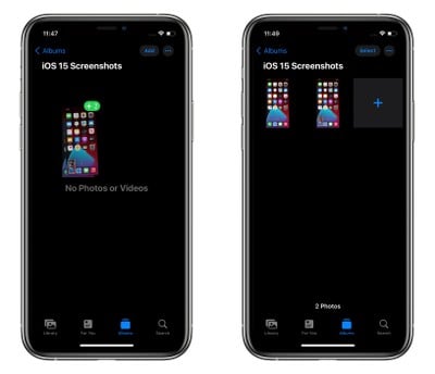 - 导航到要使用屏幕截图的位置。我们正在选择我们创建的特定相册,称为“iOS 15 屏幕截图”。