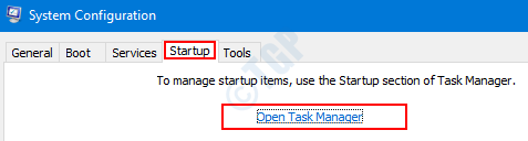 第 8 步:转到“ 启动” 选项卡,然后单击“ 打开任务管理器”