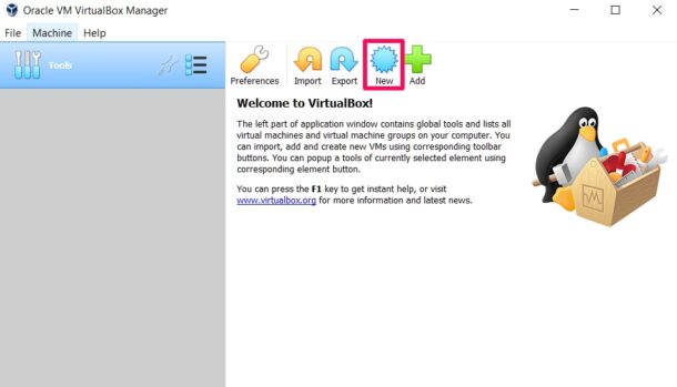 - 您已成功安装扩展包。现在,您已准备好创建虚拟机。在 VirtualBox 软件中单击“新建”。