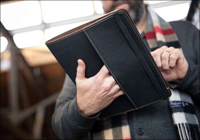 就像经典的皮套一样,这款包有一个弹性搭扣和一个可存放文件的内袋。此外,这款对开式保护套是少数适用于Apple Magic Keyboard或Apple Smart Keyboard Folio 保护套的保护套之一。