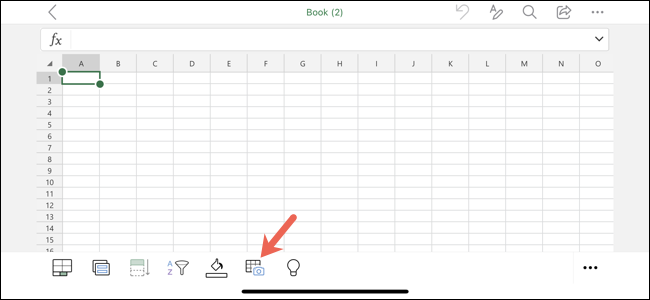 根据您在手机上查看和使用 Excel 的方式,您可能会或可能不会在底部工具栏中看到“图片中的数据”图标。