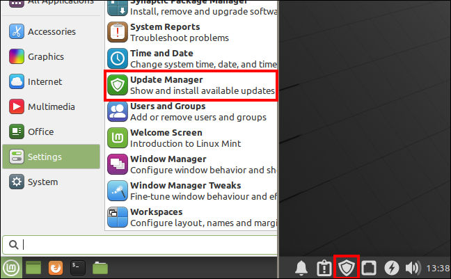 从您的任务栏(如果它可见)或从您的应用程序菜单启动 Update Manager。