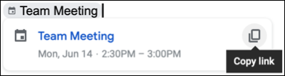 用于 Google 日历事件的 Smart Chips 中的操作不如用于文件的操作那么丰富,但它们仍然很有用。