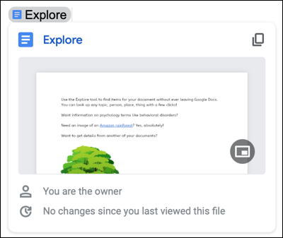 一旦该项目在您的文档中,您、您的读者或您与之共享的任何其他人只需将光标移到该项目上即可显示智能芯片。从那里,您可以根据项目的类型执行多项操作。